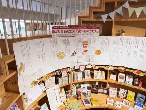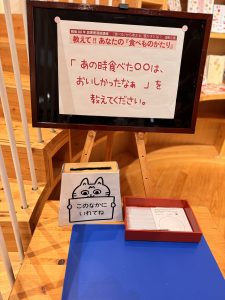 来館された方々に、「あの時、あの人と食べた○○は美味しかったなー」を書いて貼っていただきました。全館で実施しました。