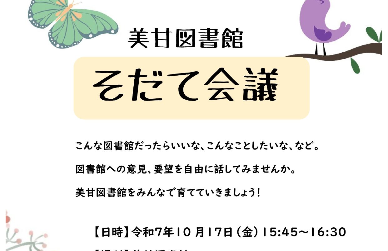美甘図書館にて図書館そだて会議を開催します。