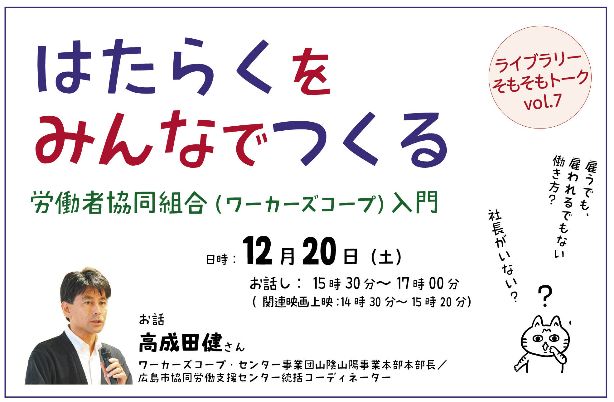 ライブラリーそもそもトークvol.7 はたらくをみんなでつくる 労働者協同組合(ワーカーズコープ)入門