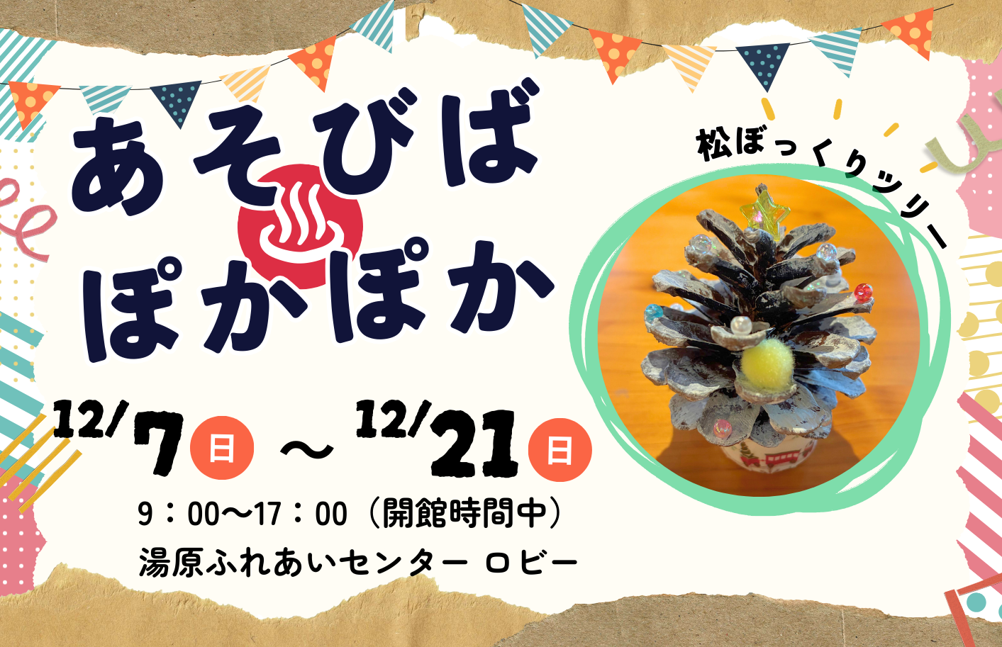あそびば♨ぽかぽか 12月「松ぼっくりツリーづくり」