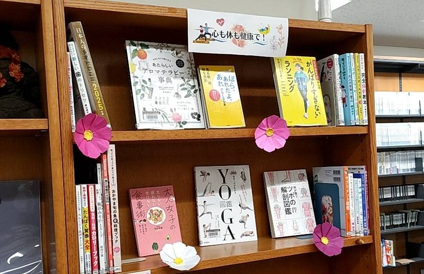 「真庭市健康づくり月間」にちなんで、心も体も癒しながら健康にしていけそうな本を選んでみました。
