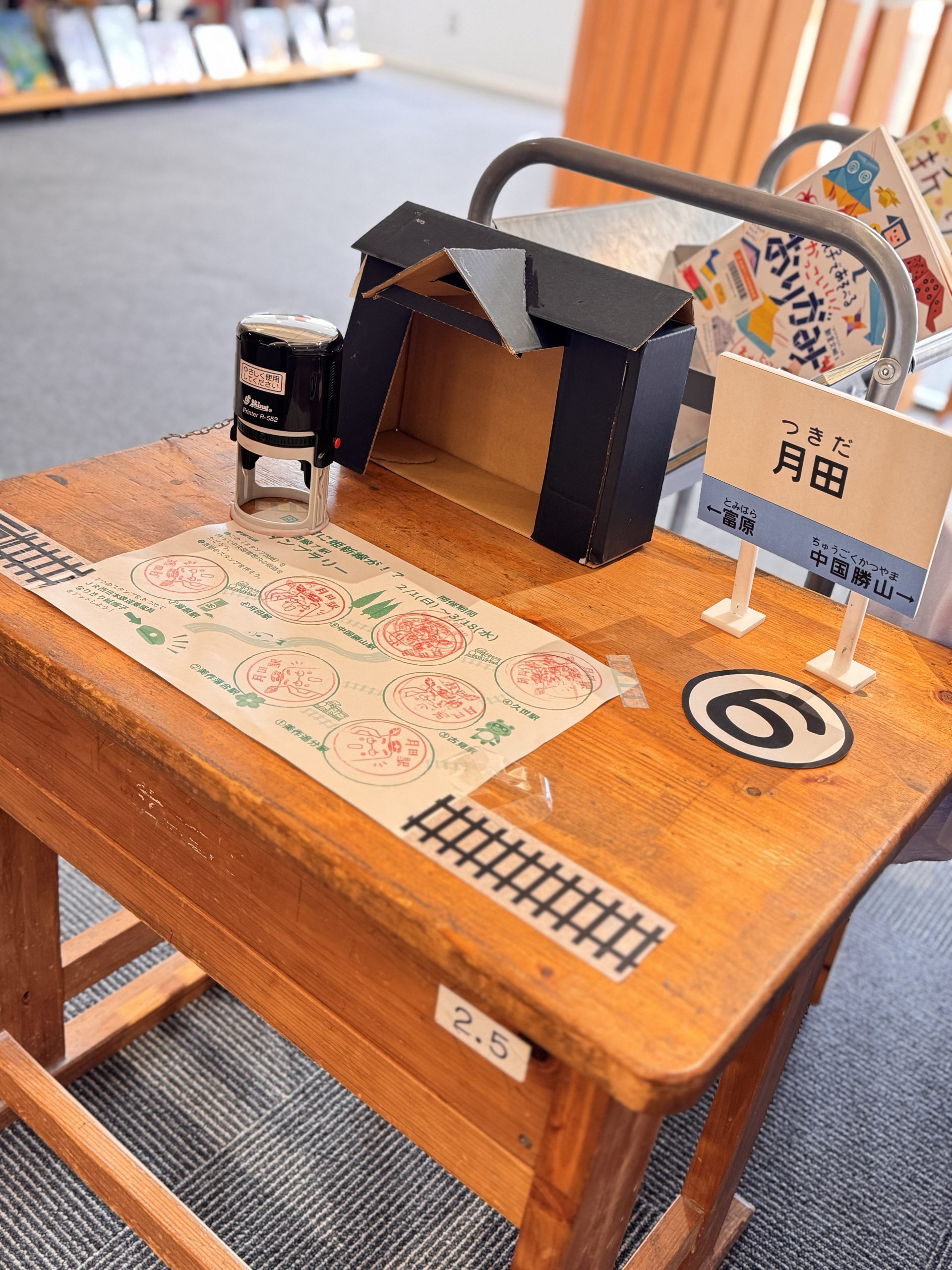 真庭市くらし安全課とのコラボで、館内に姫新線がやってきています!